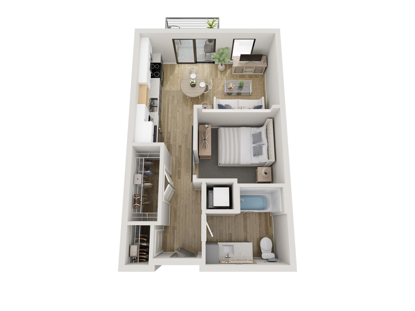 Wild Oak's studio, 1, 2, and 3-bedroom floor plans were expertly designed to maximize space. Each apartment home is filled with natural light, open-concept kitchens and in-home washer and dryer. Upgraded hand-picked finishes include-wood inspired flooring, tile backsplash, and quartz counters that create an upgraded living experience.