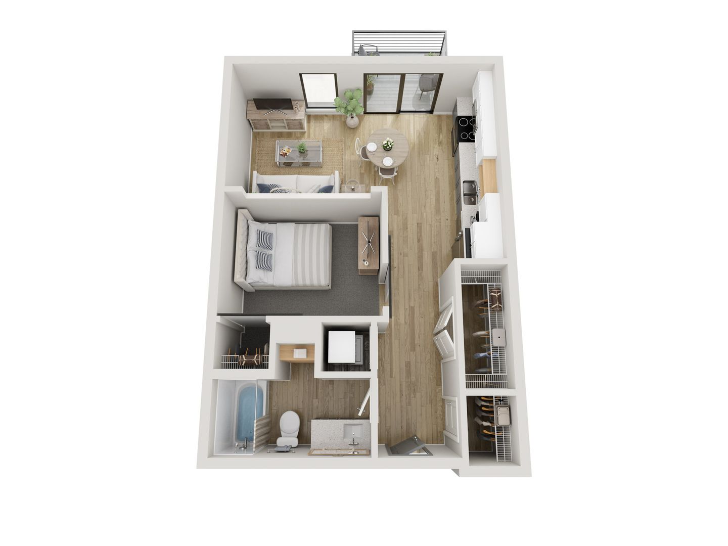 Wild Oak's studio, 1, 2, and 3-bedroom floor plans were expertly designed to maximize space. Each apartment home is filled with natural light, open-concept kitchens and in-home washer and dryer. Upgraded hand-picked finishes include-wood inspired flooring, tile backsplash, and quartz counters that create an upgraded living experience.