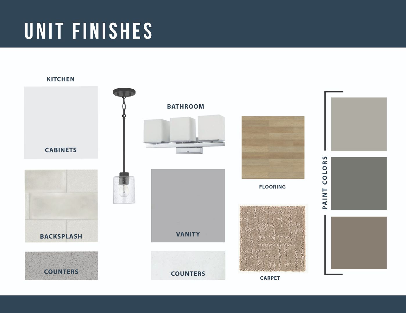 The bright, open-concept floor plans are fit with nine-foot ceilings, quartz countertops, subway tile backsplash, stainless steel appliances and and an island with pendant lighting. The large windows placed throughout each unit provide an abundance of natural light, bringing the outdoors in. You will especially love the in-home washer and dryer, private balcony and ample linen and closet storage.