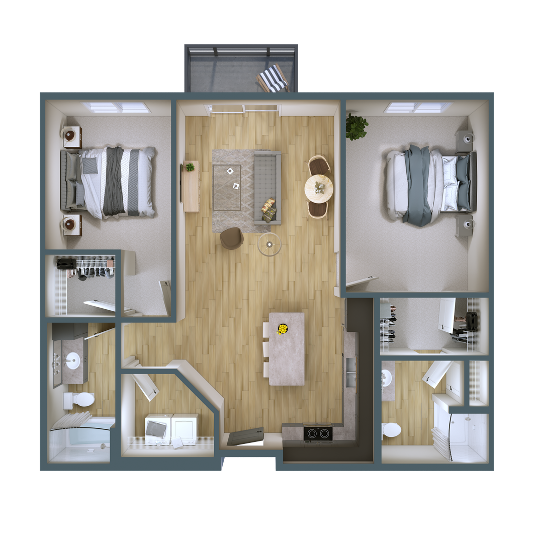 Studio, one, two and three-bedroom apartment homes feature elevated nine foot ceilings, in-home washer and dryers and the latest finishes that easily adapt to your personal style.