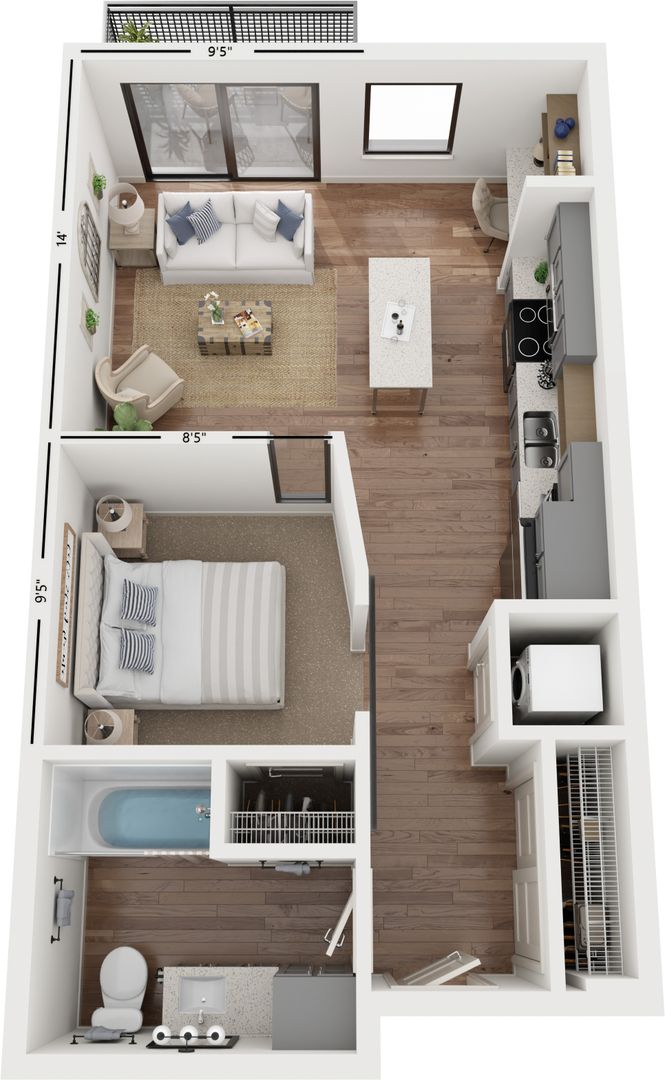 Lynvue's alcove, studio, 1, 2, and 3-bedroom floor plans were expertly designed to maximize space. Each apartment home is filled with natural light, open-concept contemporary kitchens and in-home washer and dryer. Upgraded hand-picked finishes include-wood inspired flooring, tile backsplash, and quartz countertops that create an upgraded living experience.