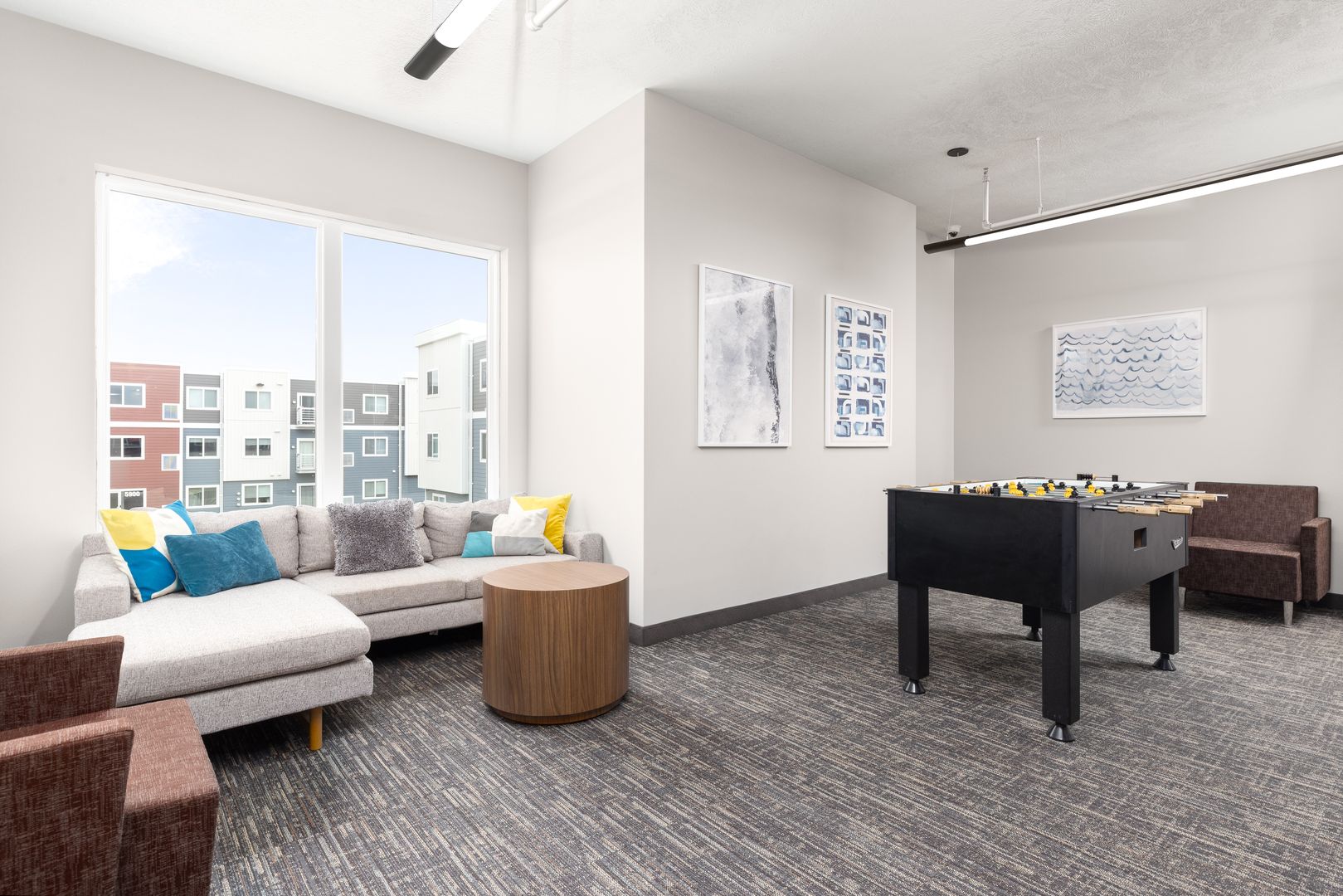 On-site conveniences include a fitness studio, outdoor pool, clubroom, sports simulator, enclosed parking, on-site rental office and more.