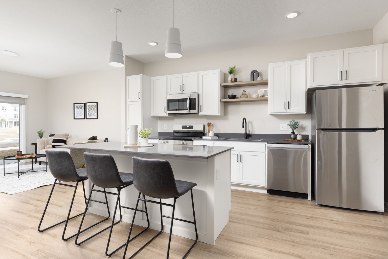 Come home to classic details and warm interiors at Current 33, where we invite you to unwind in your sophisticated space. The studio, 1, 2, and 3-bedroom floor plans were expertly designed to maximize space. Each apartment home is filled with natural light, open-concept kitchens and in-home washer and dryer. Upgraded unit features include hand-picked finishes, wood inspired flooring, open shelving and quartz countertops that create an upgraded living experience. A private balcony and walk-in closets are available in select floor plans.