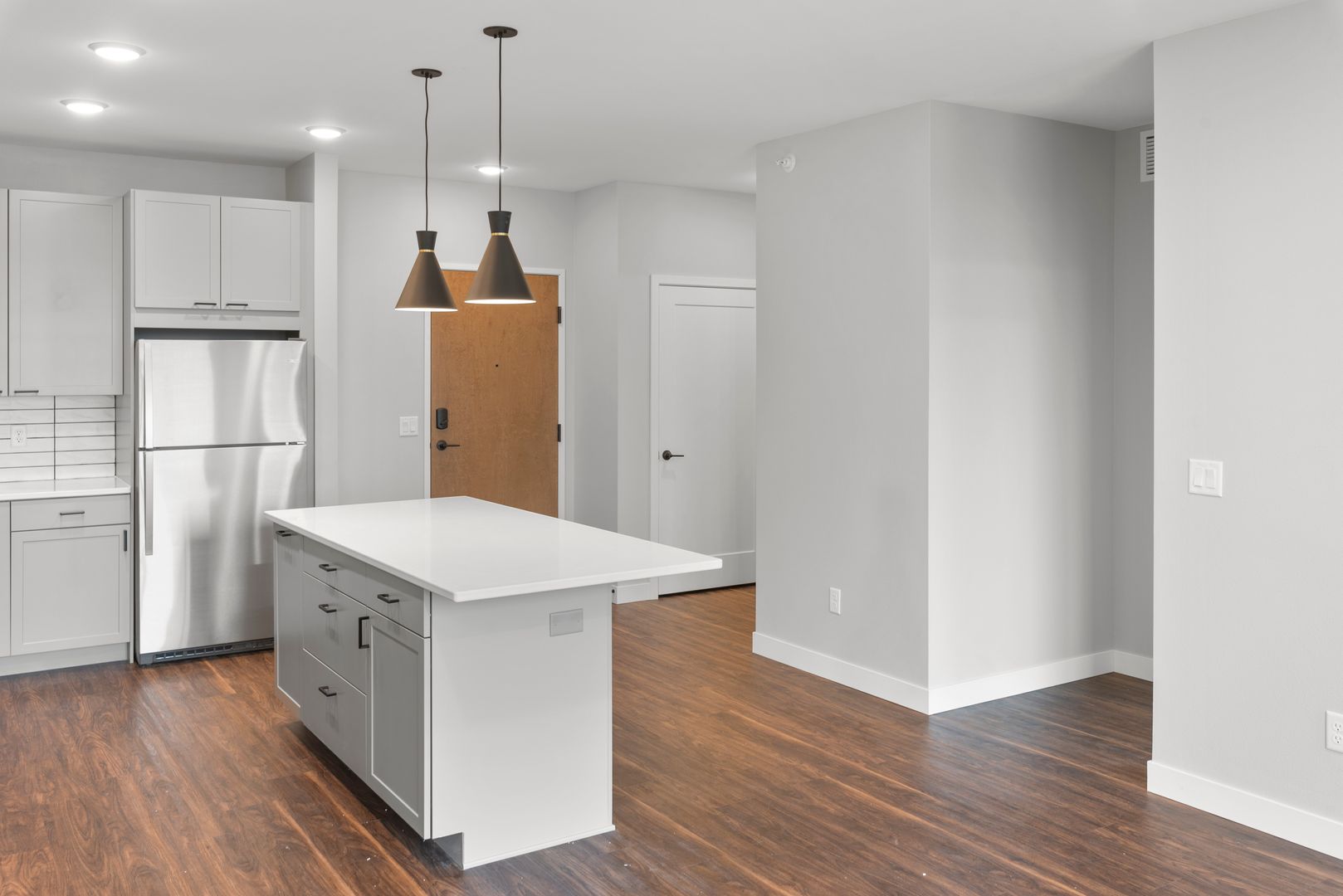 Enjoy luxurious features such as white quartz countertops, stainless steel appliances, large windows and tile backsplash. Entertain your guests in our clubroom, packed with awesome amenities. Walk out onto the rooftop deck and grill with your friends or sit by the fire and enjoy the beautiful view. Your experience at Uptown & Main also includes a pet spa, a fitness center and much more!