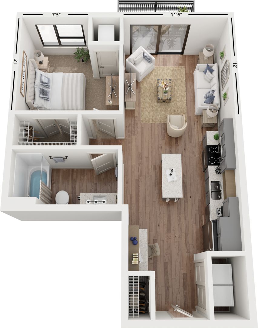 Lynvue's alcove, studio, 1, 2, and 3-bedroom floor plans were expertly designed to maximize space. Each apartment home is filled with natural light, open-concept contemporary kitchens and in-home washer and dryer. Upgraded hand-picked finishes include-wood inspired flooring, tile backsplash, and quartz countertops that create an upgraded living experience.