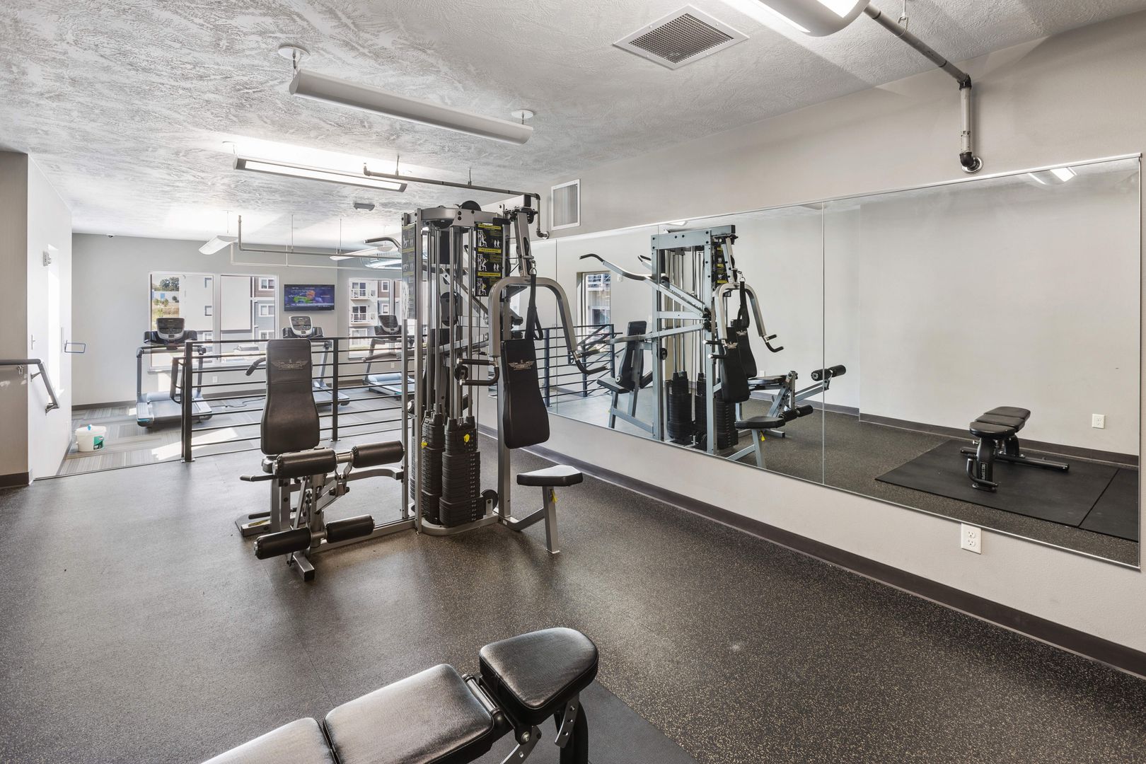 On-site conveniences include a fitness studio, outdoor pool, clubroom, sports simulator, enclosed parking, on-site rental office and more.