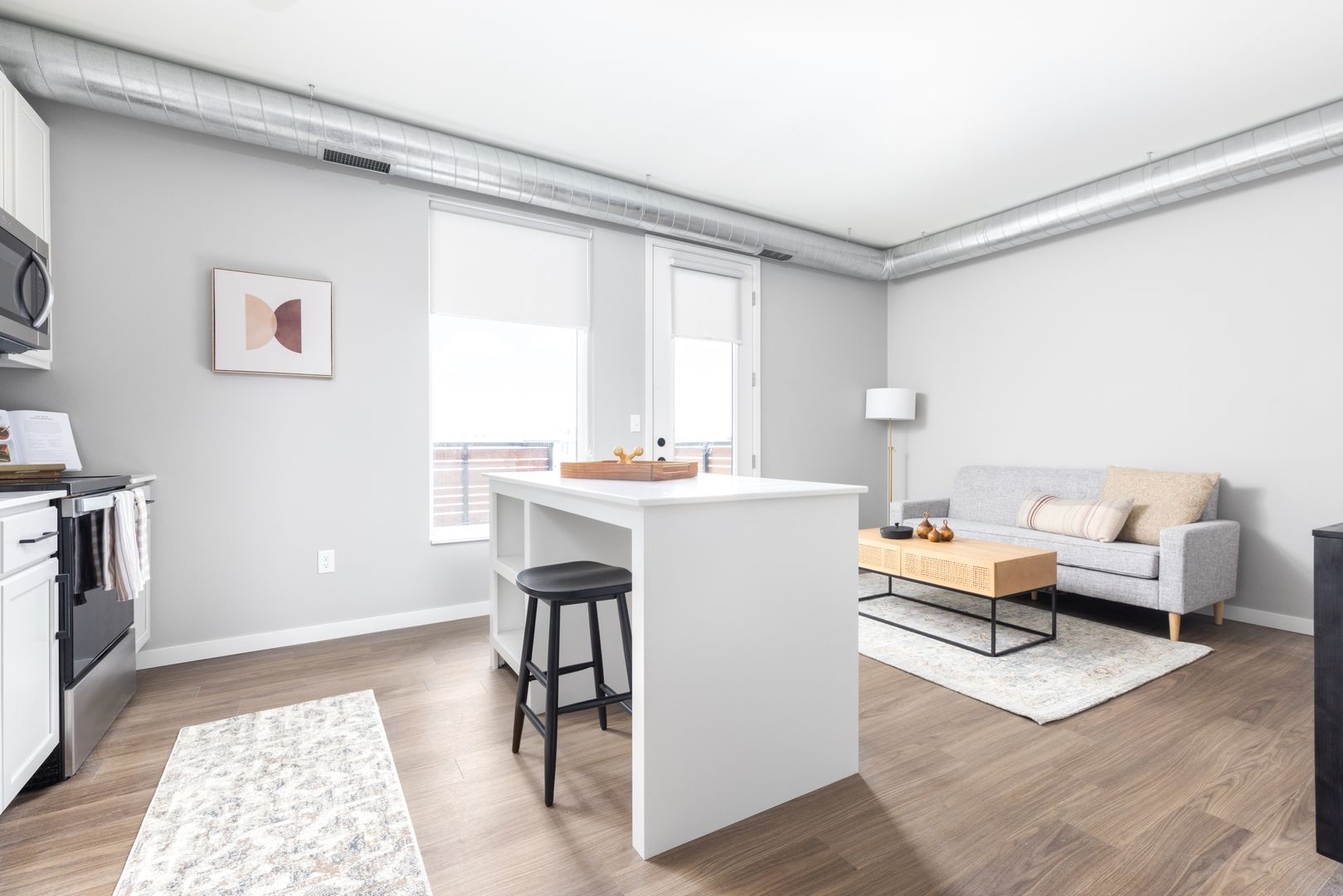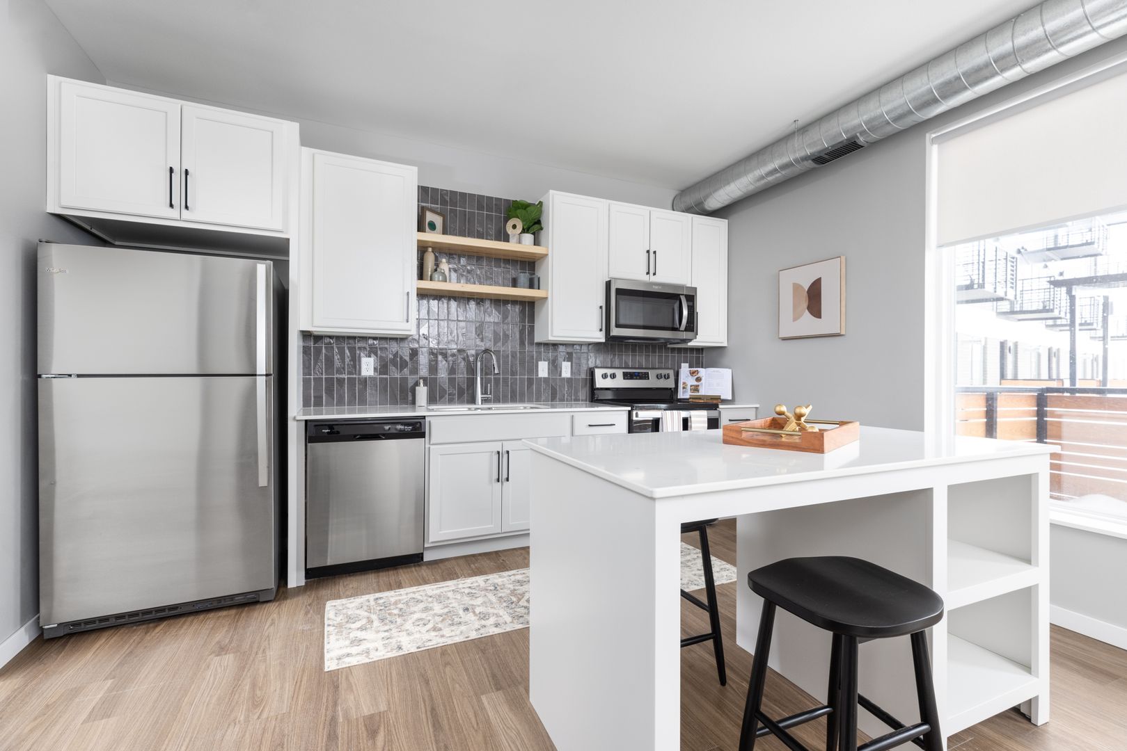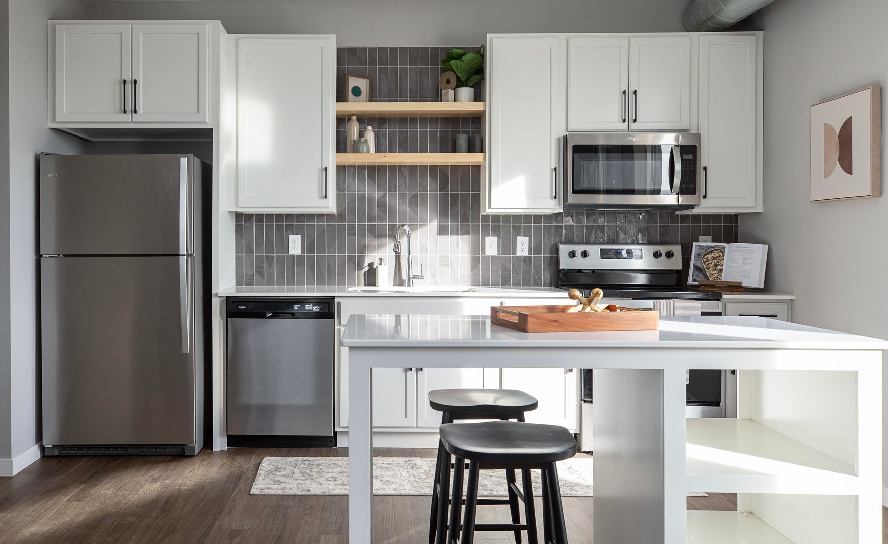 Each apartment home is filled with natural light, open-concept kitchens, an in-home washer and dryer, and upgraded modern finishes.